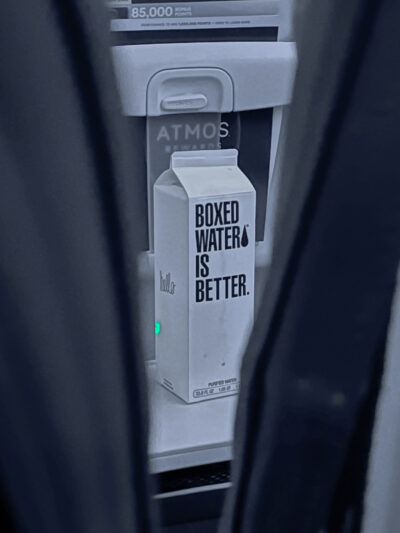 During drink service, the guy in front of me asked for water and they gave him the entire carton!