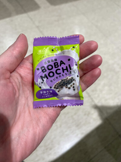 and since I still had many hours to kill, I walked the entirety of the terminal. Several stores were offering samples, like this taro boba mochi: