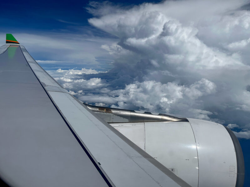 The airport is somewhere through that tall, angry cloud… We had to several circles to get down to landing altitude: