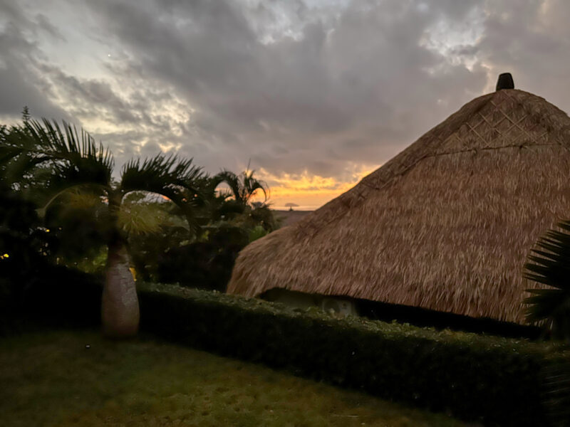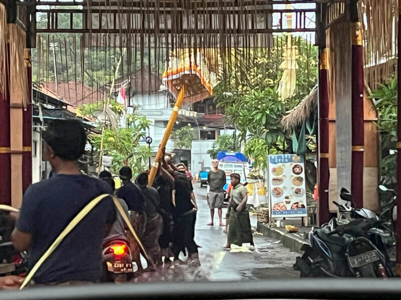 It’s been raining on and off all day here in Bali and there’s been some flooding- it took one of the earlier groups about 3 hours to get to the hotel, but my driver is on on mission! Driving here reminds me a lot of driving in South America- lanes are suggestions, lots of honking, motorbikes/scooters everywhere (though they were all wearing helmets! and flipflops…).