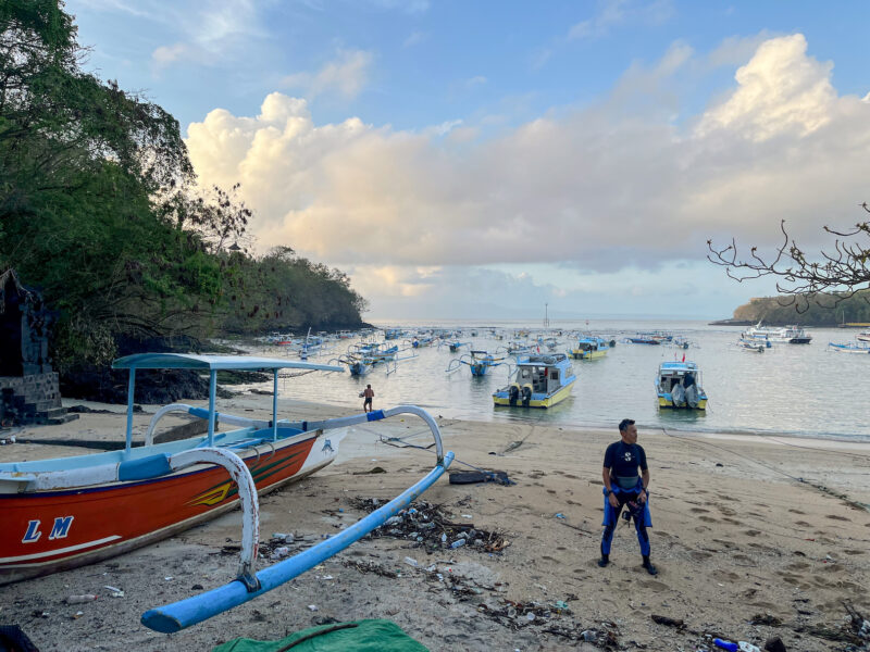 Our plan was to head over to Nusa Penida, where mola molas are known to school, but it’s a popular site and we wanted to be the first ones there, so we chartered a boat to take us there early. Our resort packed us boxed breakfasts (which I already ate) as we planned to leave at 0630: