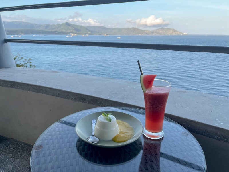 where I enjoyed my passionfruit panne cotta and watermelon/lime/mint juice with a view: