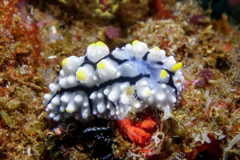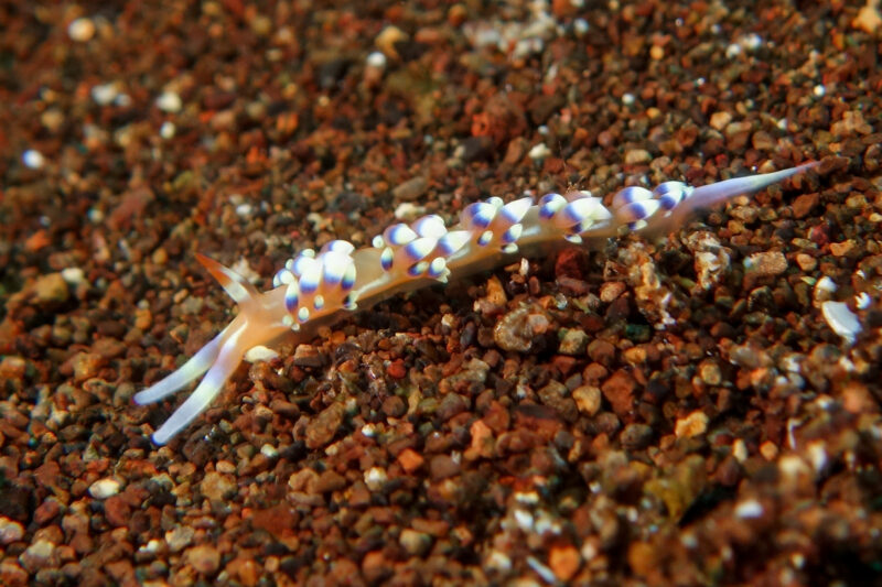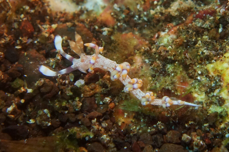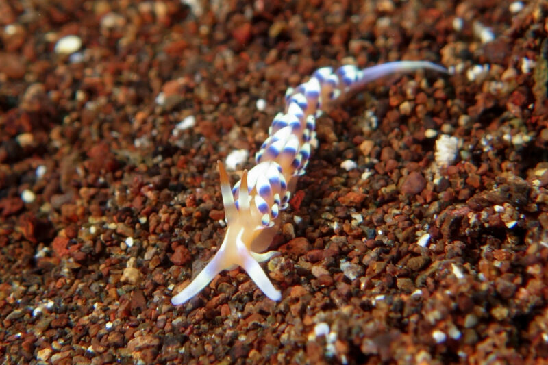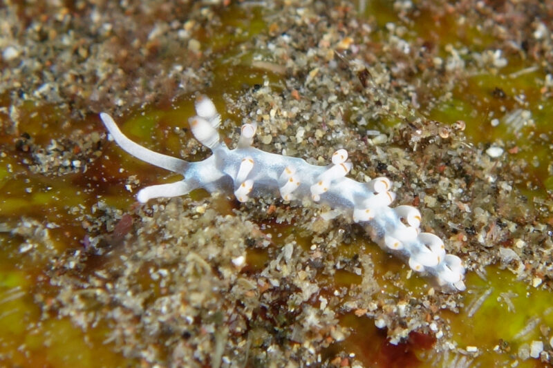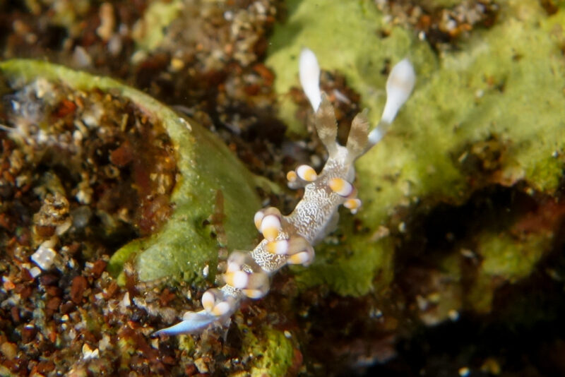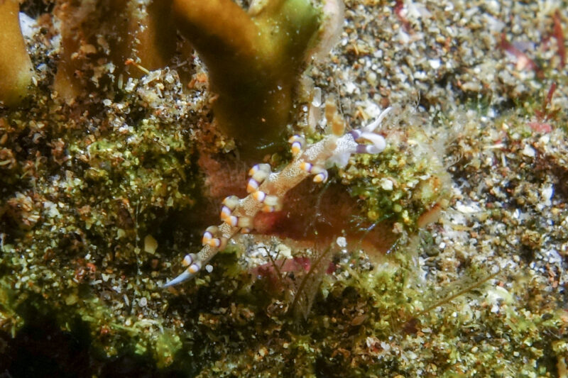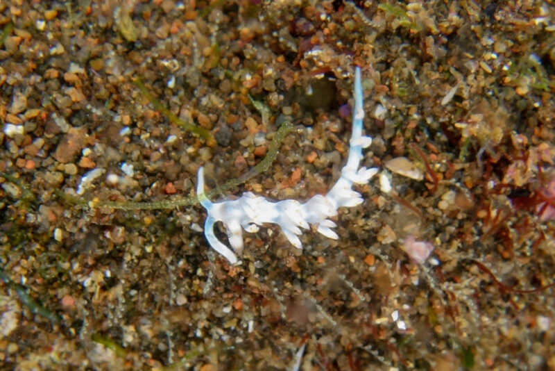 From a distance these aeolid nudis all look the same to me, it’s not until I get them loaded onto my computer that I see if I found a new one. I’ve seen this guy, the Caloria indica, before, but he’s still pretty!