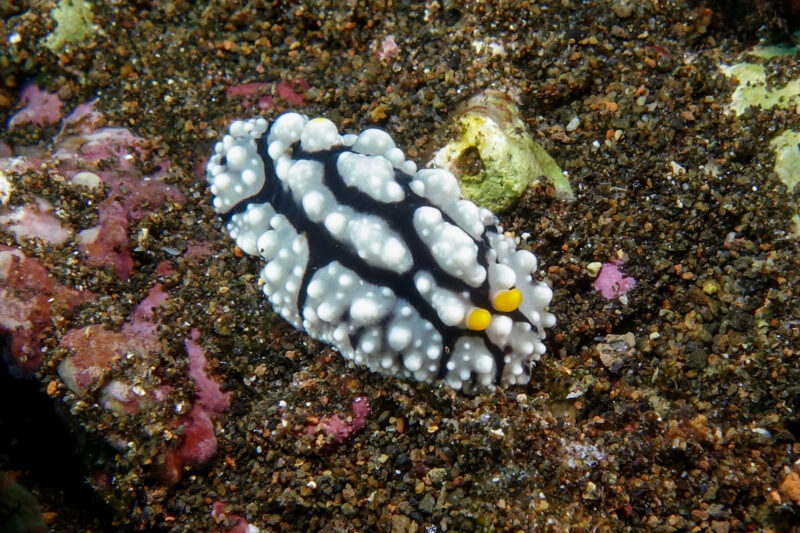Plus, the volcano warms the sand- I’ll sometimes use a finger to anchor myself in the sand and it was really hard not to just shove my whole hand in- especially since water temps here, while hovering around 80°F/26.5°C, are starting to get a bit cool toward the end of my dive.