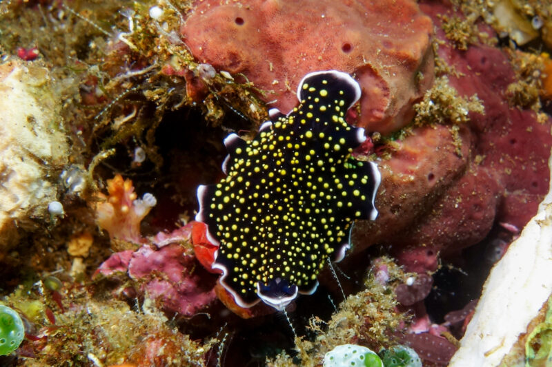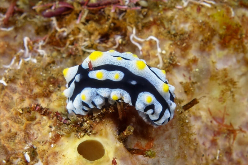 Now this is my kind of dive! I spotted a nudi within moments of dropping, but while waiting for him to settle in the surge, a snake came through!