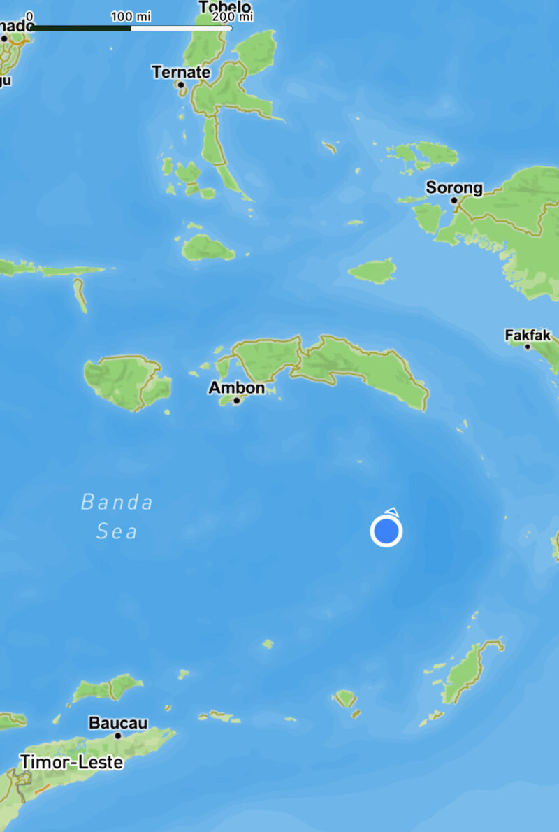Last night while we slept, the boat relocated southeast, further into the Banda Sea: