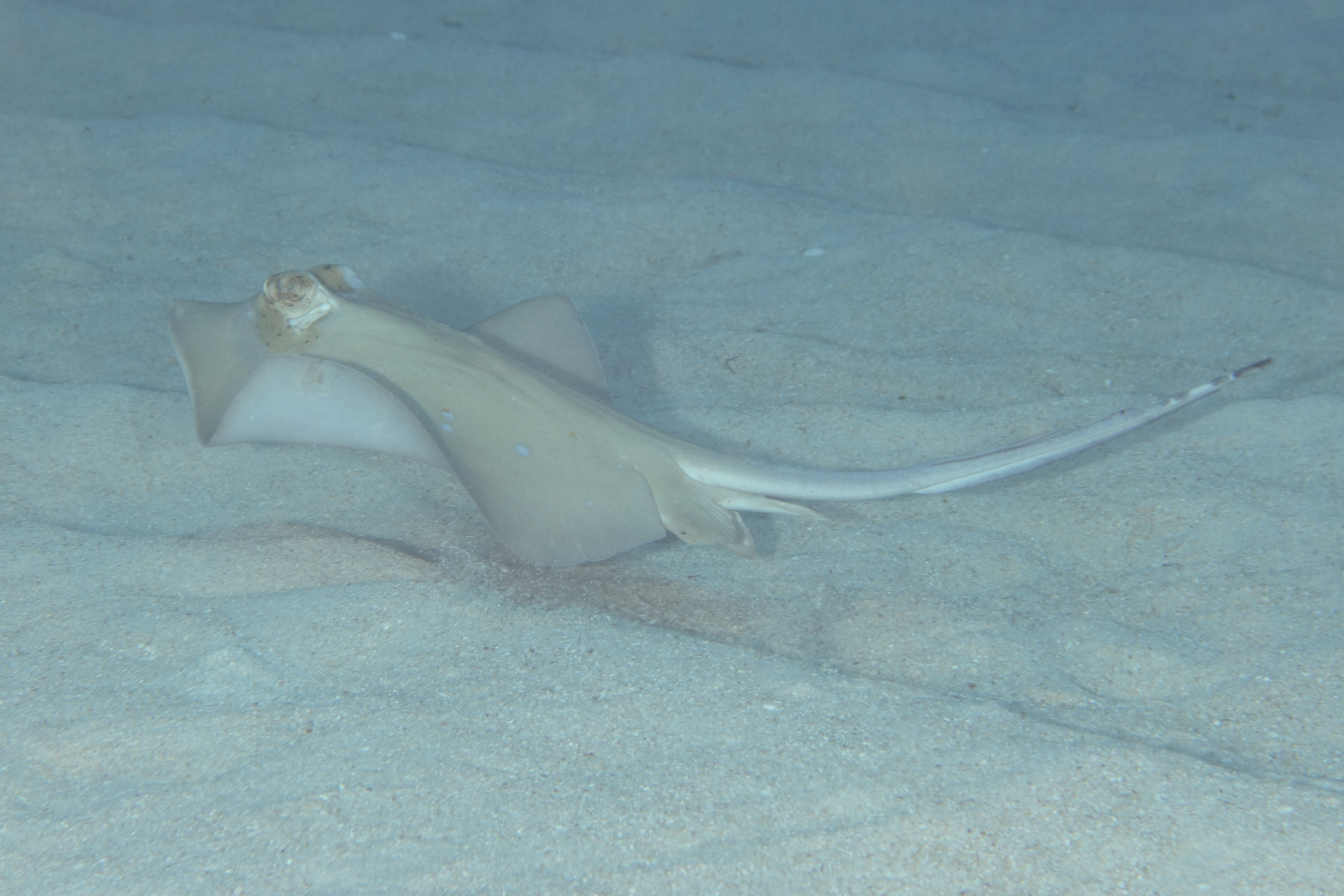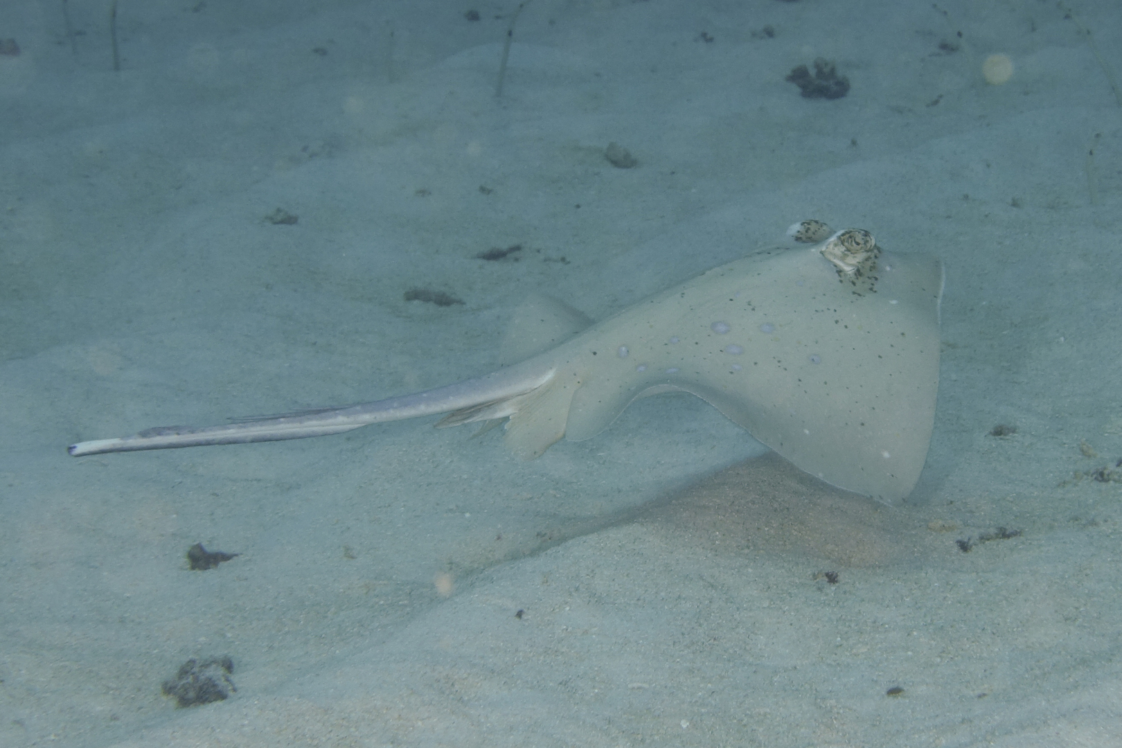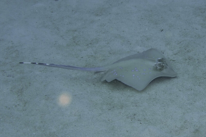 Several spotted stingrays were cruising around: