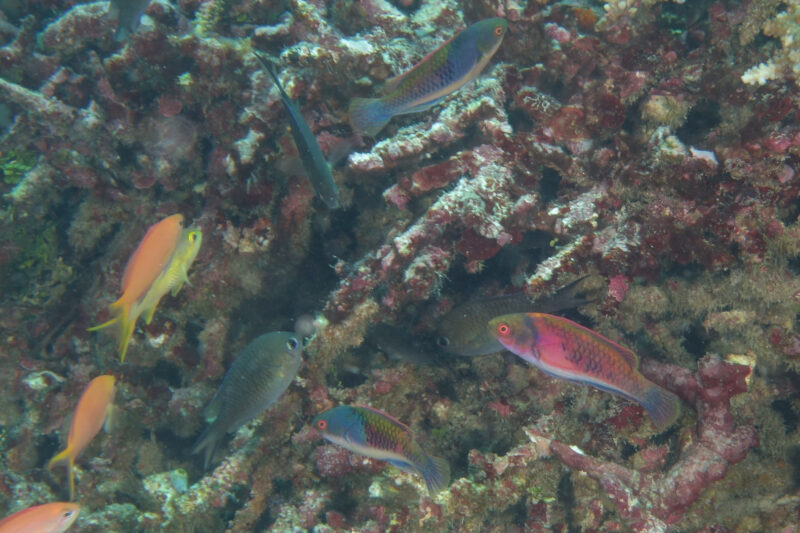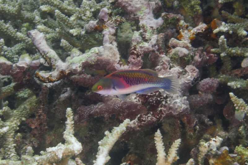 I spend a good chunk of this dive chasing that rainbow fish in the lower right corner: