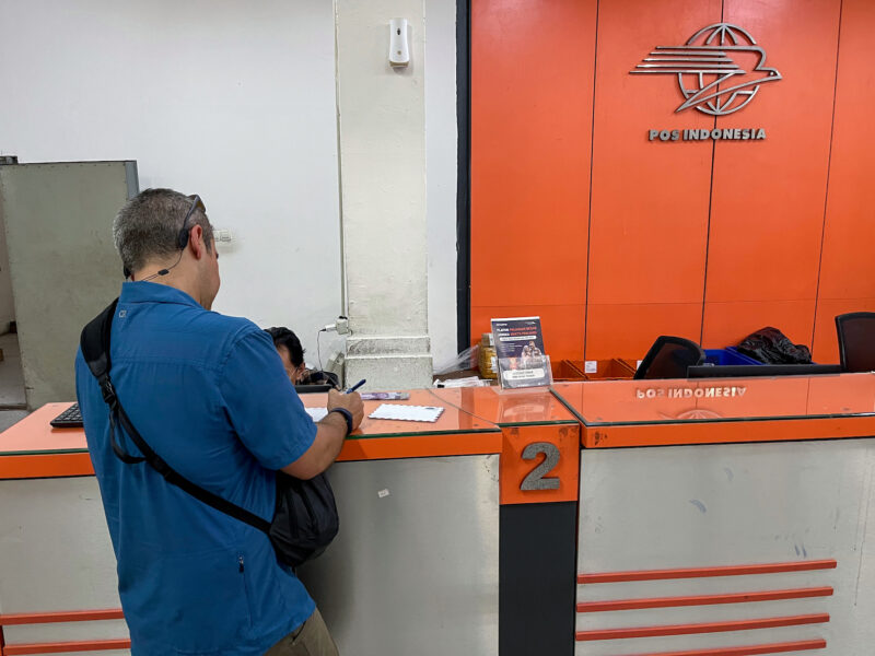 We stopped at the post office so Tom could send some postcards home: