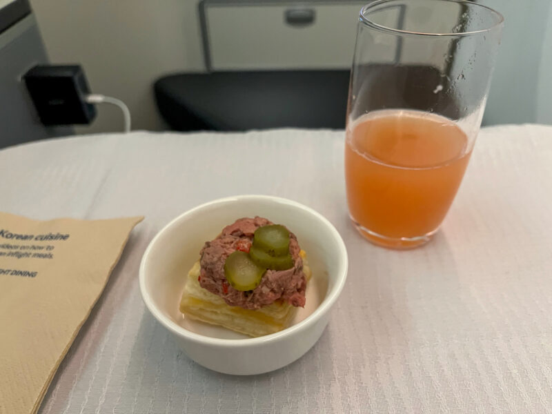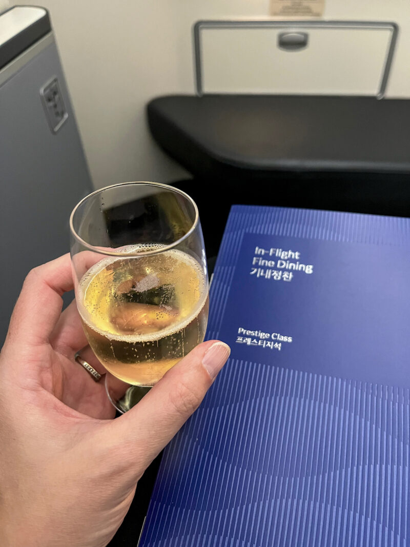 I know you can get free alcohol on international flights, and fancy alcohol here in Prestige (Korean Air’s business class), but they also have guava juice, and that’s way more my style: