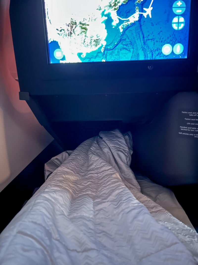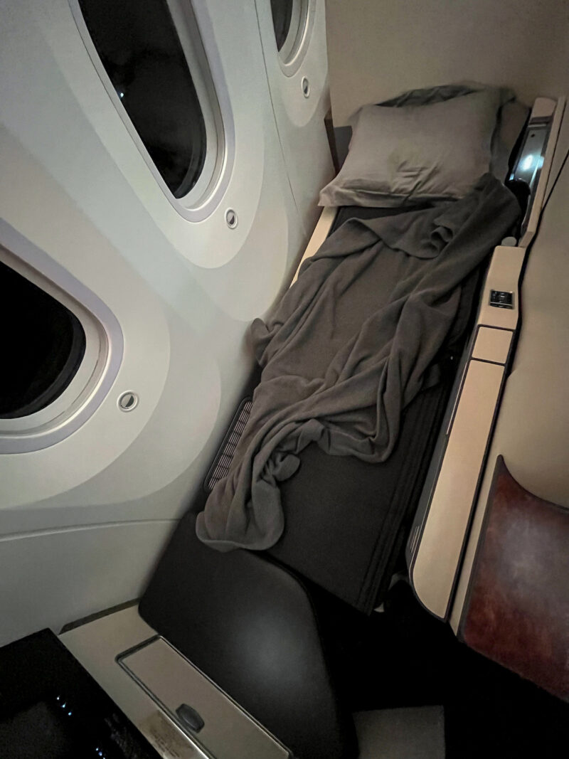 I haven’t slept much since I left the boat about 37 hours ago, so my plan is to take advantage of my lay-flat seat again and get as much sleep as possible.