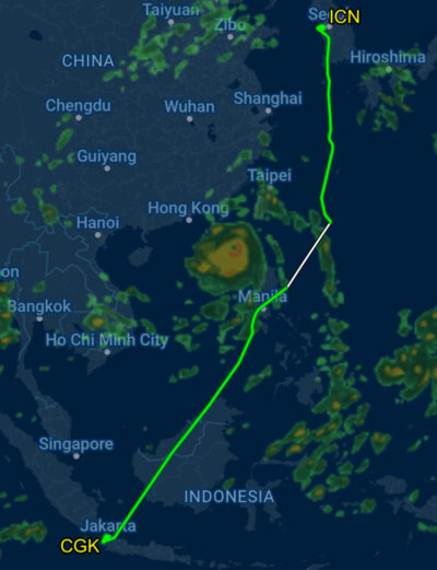 Unfortunately, the in-air time on this leg was only like 7 hours long, which included a slight deviation to avoid a typhoon: