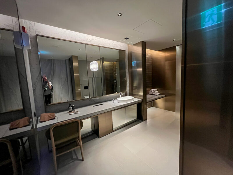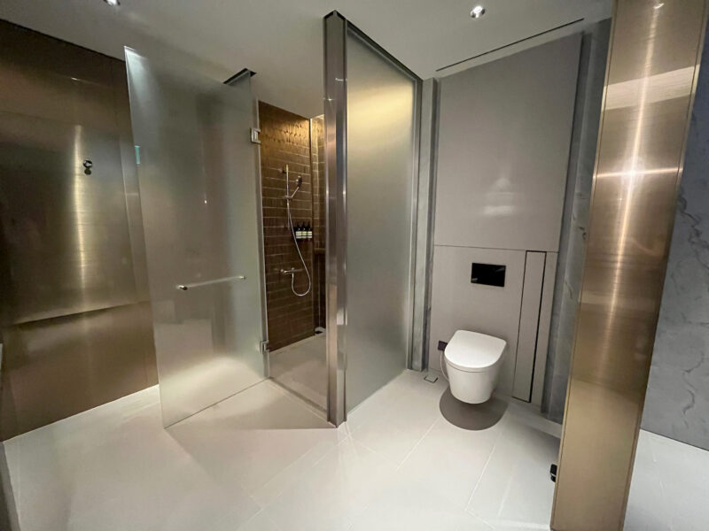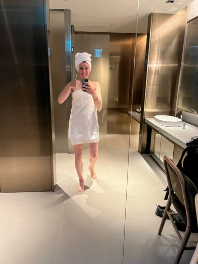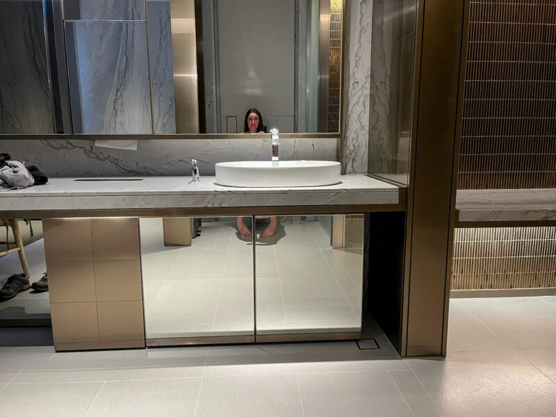 It started getting busier at the day went on, and I did want to get a shower in before this flight. When I got here, there was no wait, but by the time I decided it was shower time, there were 2 people in the (digital) line in front of me. I waited a little over an hour for my turn; look how spacious this shower space is!