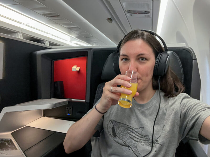 Honestly, not that impressed. I mean, it was filling, which I’m thankful for, but not great. Meh. I’m more excited about the fact that I can turn my seat into a bed and lay flat for this flight!