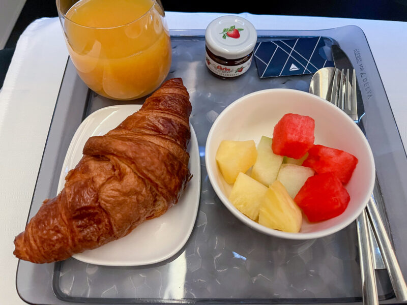 Standard breakfast, but nicer presentation and real flatware. They did let me pick out 2 rolls though 🙂