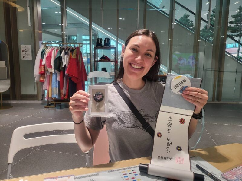 But I did learn that the construction that was going on last time I was here was done and they’ve got this cultural experience center set up, where you can do some crafts! I love crafts! I made a key chain, learned to write Korean characters and did some coloring: