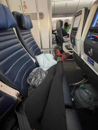 and once the lights went down, most people slept- myself included. I mean, I woke up every time I rolled over, but between my 3 pillows and 3 blankets and having an entire row, I think I slept pretty well for being in Economy.