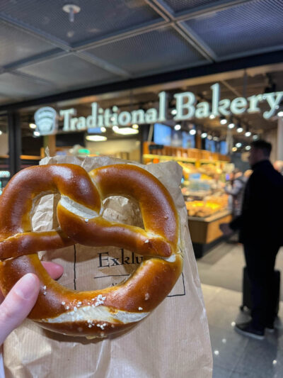 …though the woman taking my order was confused by “one pretzel.” I noticed the sign actually called them bretzels, so I tried ein bretzel, and that secured me my snack! I have now exhausted my German vocabulary.