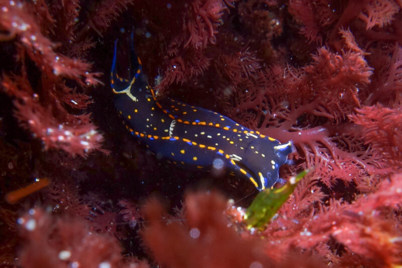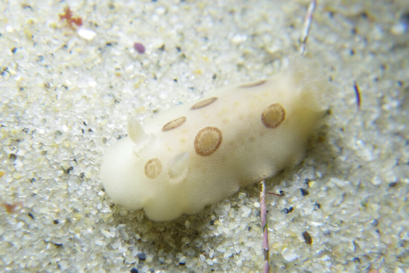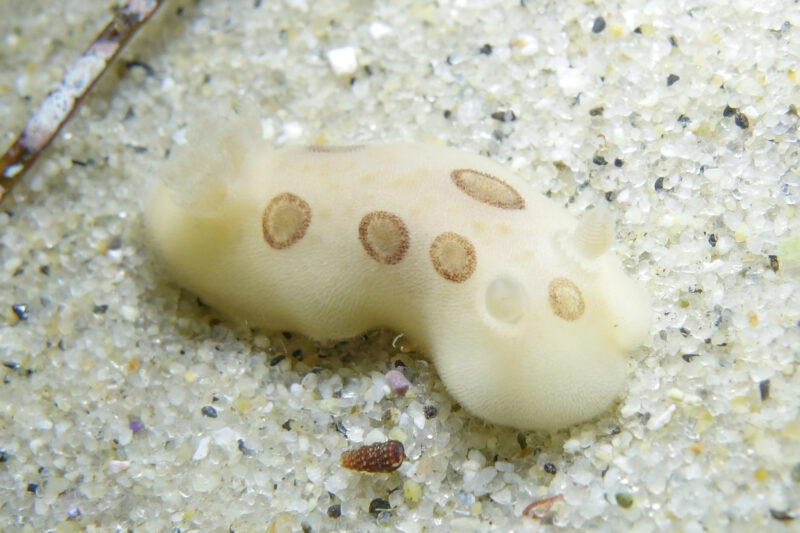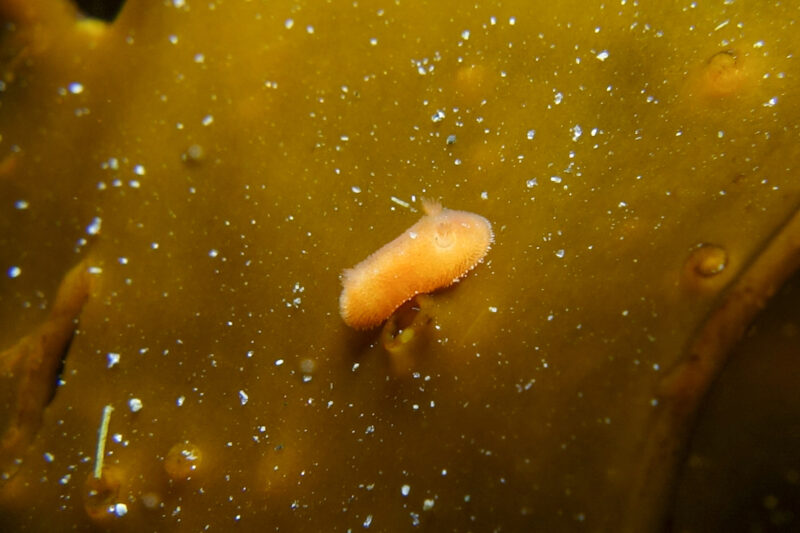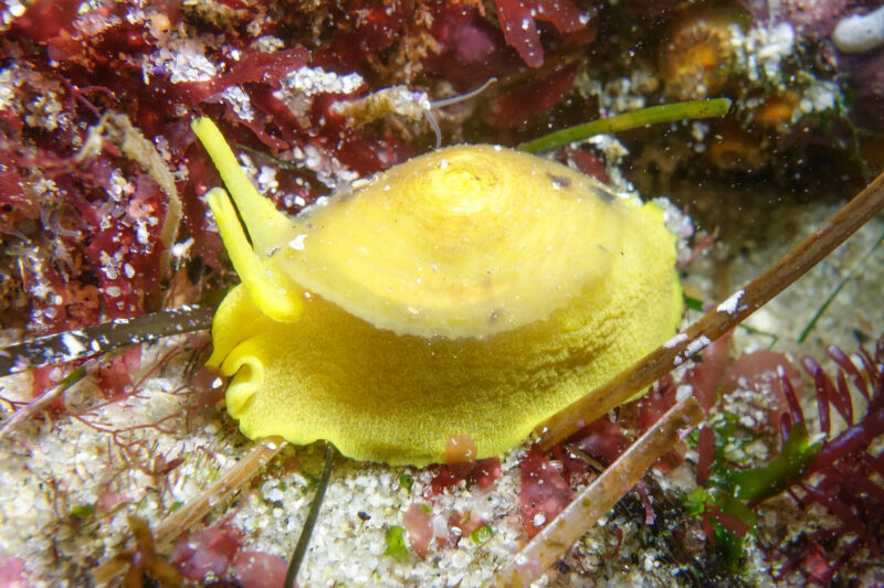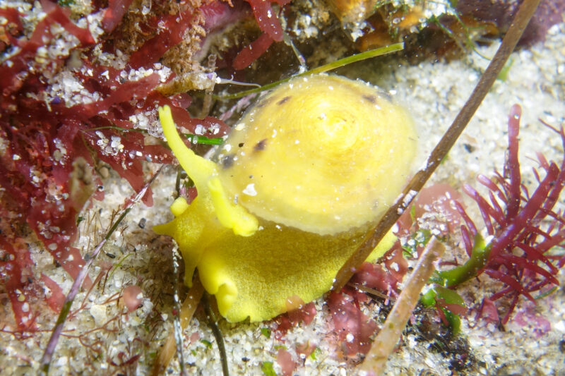 This slug, a California aglaja / Navanax inermis, was on the move! He did not want to stay still for a picture, so I’m content with this shot: