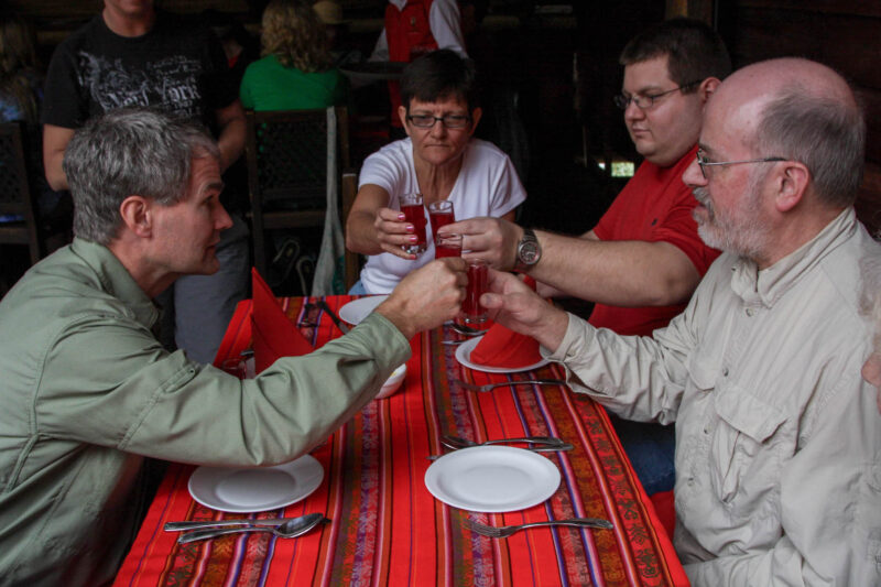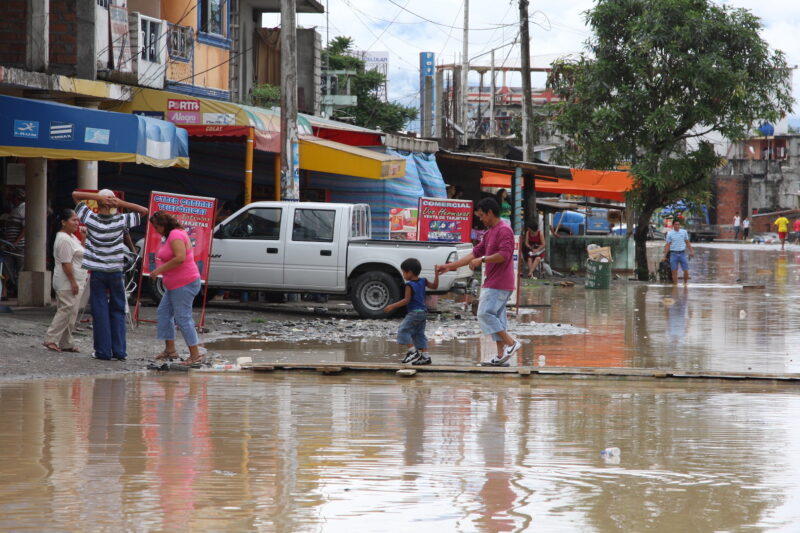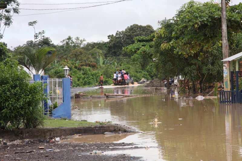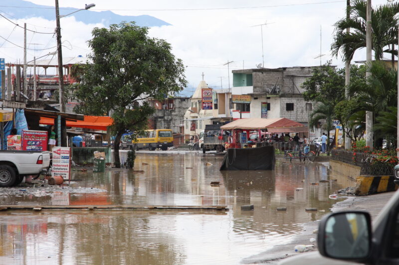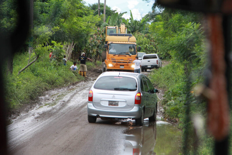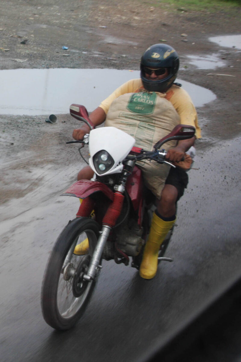 On a previous trip, the road was washed out by a mudslide, and while roads were passable today, there was still a lot of water on the roadways in Puerto Inca, where we stopped for snacks/bathroom break: